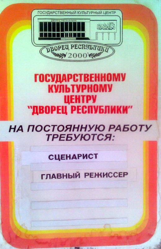 В Дворец республики требуется главный режиссер