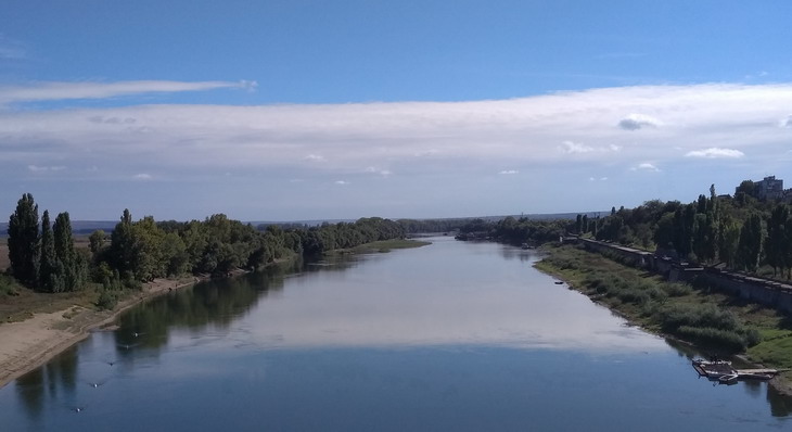 Река Днестр в Бендерах. Напротив судоремонтного - на треть зелено.
