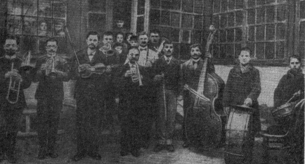 Большую роль в развитии музыкальной культуры Советской Молдавии сыграл талантливый, высокообразованный музыкант, окончивший Варшавскую консерваторию,— М. А. Кафтанати. В 1928 г. он организовывает в г. Балте (тогдашней столице МАССР) инструментальную капеллу,- небольшой оркестровый ансамбль примерно из 20 человек, концерты которого пользовались неизменным успехом. Этот успех во многом был предопределен репертуаром, состоящим из обработок молдавских народных песен и танцев, сделанных самим руководителем оркестра. Из скромности он их именовал попросту аранжировками, хотя многие из них были довольно развернутыми — в плане фантазий, вариаций. Молдавская народная музыка привлекает к себе все большее и большее внимание. Появляются первые собиратели фольклора, большие энтузиасты своего дела. Здесь в первую очередь надлежит вспомнить имя П. Кьору, который еще в 1926—1928 гг. выпустил четыре сборника молдавских народных песен. Вслед за ними в 1935 г. Н. Ненев (К. Неню), известный энтузиаст хорового искусства, совместно с Е. Лебедевой выпускают еще одну книгу молдавских песен, а в 1937 г. выходит сборник В. Корчинского «Молдавские наигрыши и песни». В 1940 г. появляется песенный сборник, составленный Д. Гершфельдом. Вложение 20197 Рис. 70. Лэутар Г. Мурга со своим оркестром (нач. XX в.) |