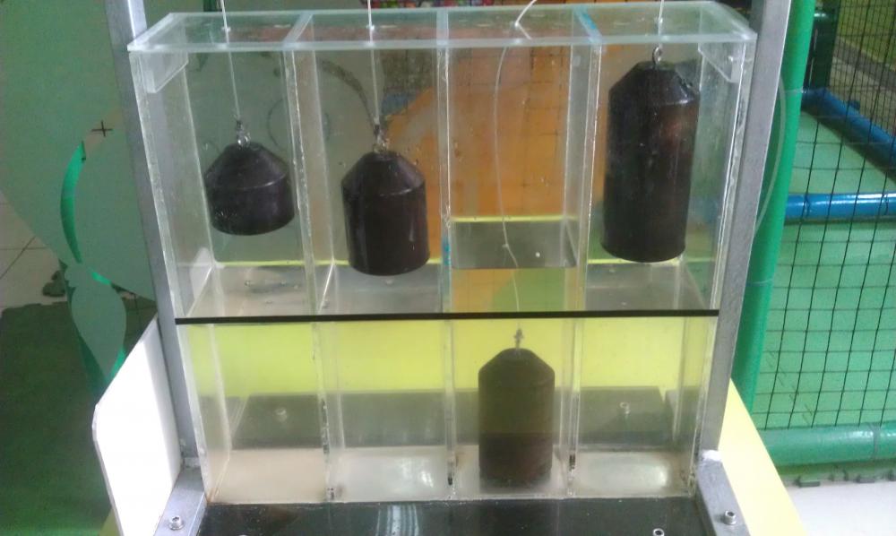 Объём тела, погружённого в воду, равен объёму вытесненной им воды. Именно это заметил Архимед принимая ванну. Он был настолько удивлён открытием, что выскочил голым на улицу с криком "Эврика!", то есть «Нашёл!» Так был открыт основной закон гидростатики — закон Архимеда. Угадай, каков тело имеет больший объем? Покрути ручку, опусти объекты в воду и наблюдай за изменением уровня жидкости! Вложение 20778 |