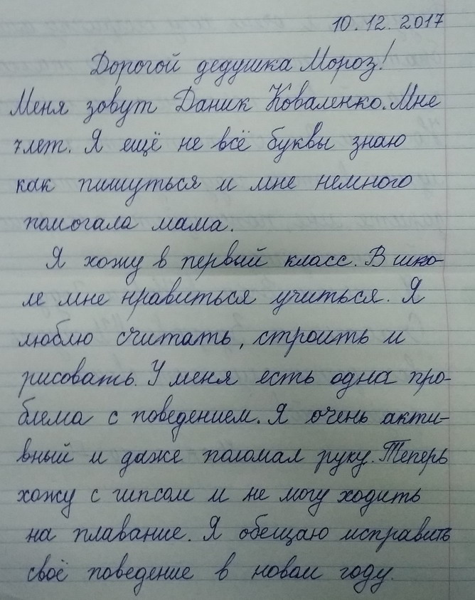 Даниилу 7 лет. Ему нравится учиться и он очень активный мальчик, хотел бы сестричку или братика, так как ему не с кем играться, а еще он просит Дедушку мороза на Новый год электрический конструктор.