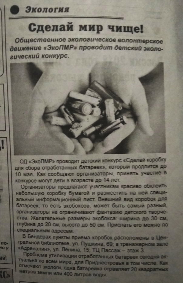 Бендерская газета "Новое Время" про конкурс батареек.