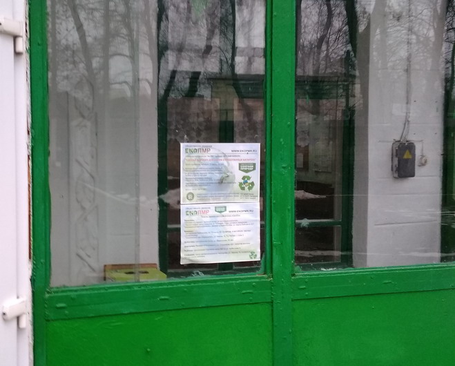 Повесили информацию про конкурс коробок для батареек в самой большой тираспольской школе №9.