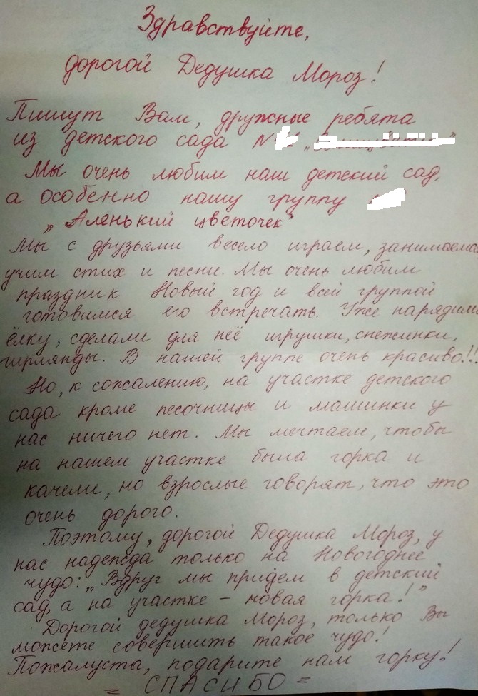 Детский садик в Тирасполе одна группа "Аленький цветочек", просят горку и качели на свой участок.