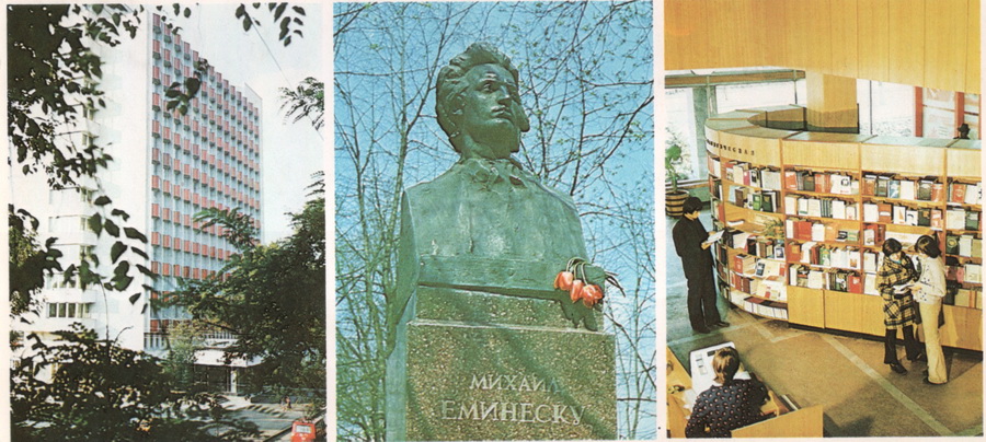 Дома и памятник М.Еминеску, книжный магазин.