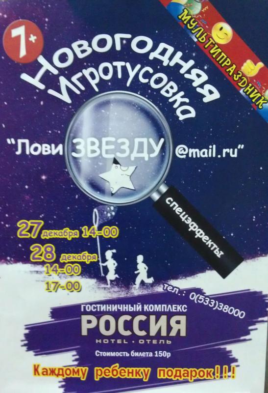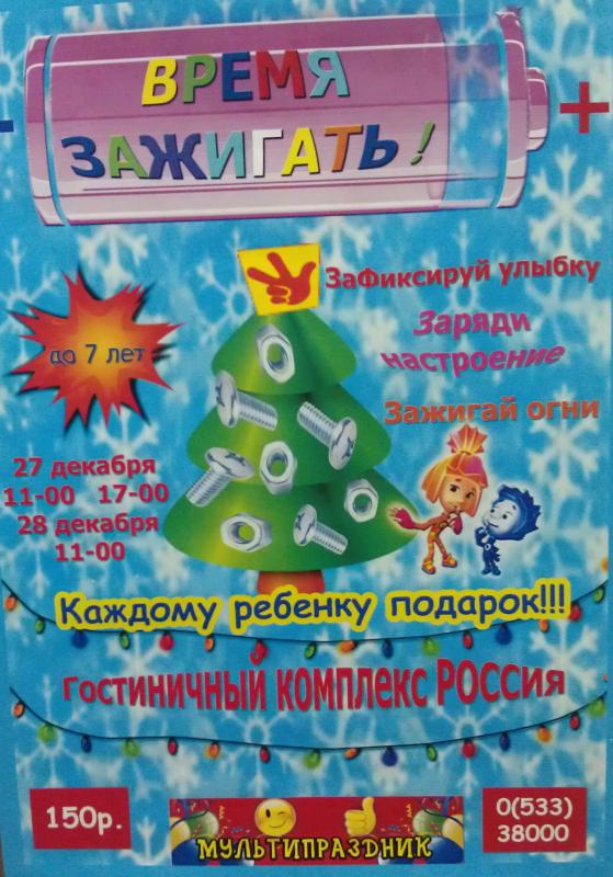 В гостинице Россия будут новогодние утренники для детей, по 150 рублей.