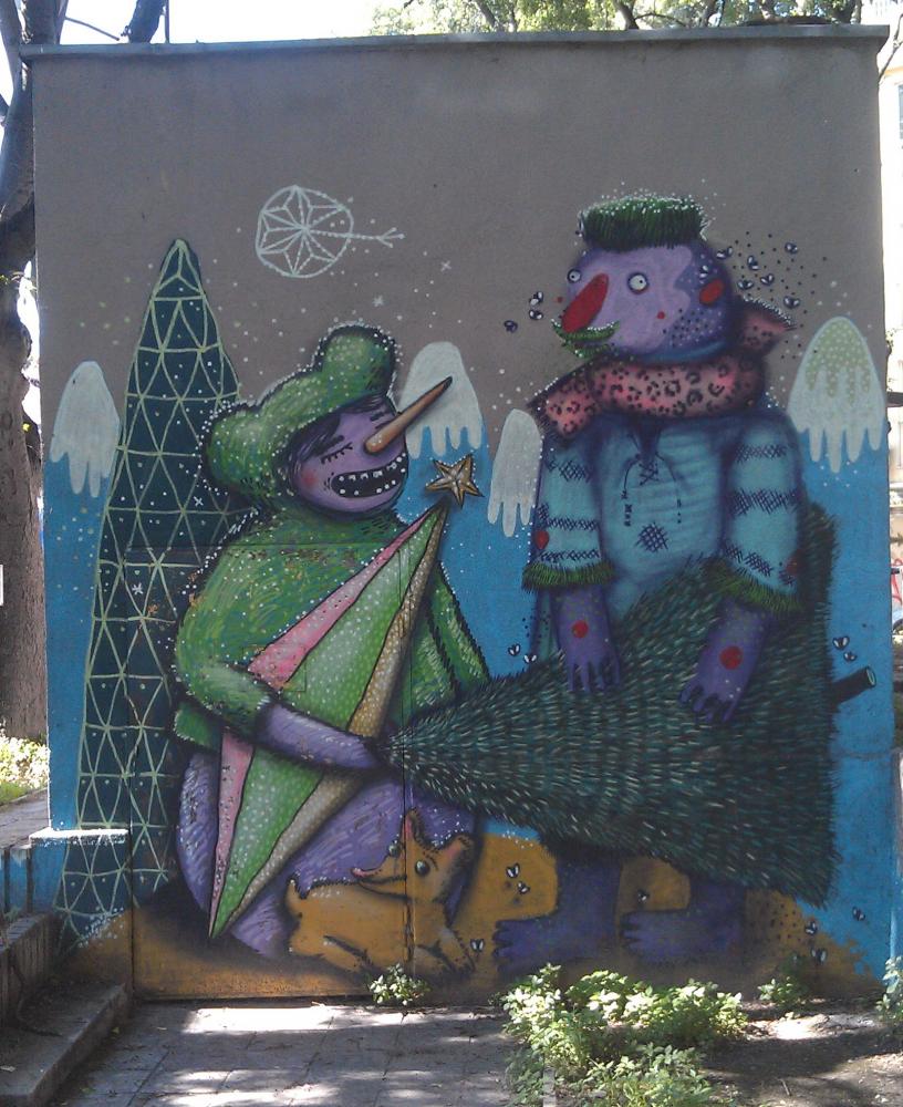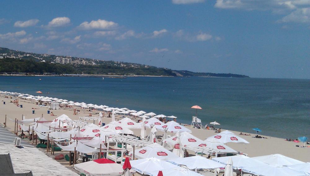 Довольно много графити, прикольное кафе из зонтиков с обнимающимися пенсионерами и городской пляж Варны.