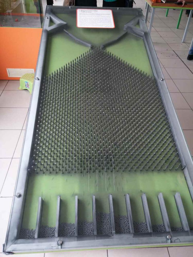 Доска Гальтона демонстрирует нам Центральную предельную теорему из теории вероятности. Но не пугайся этих страшных слов, сейчас всё станет ясно!