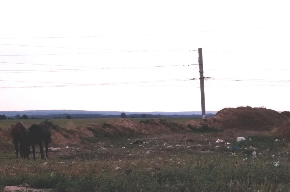 Лошади рядом с мусорным полигоном в Парканах. Типичная картина для любой свалки мусора.