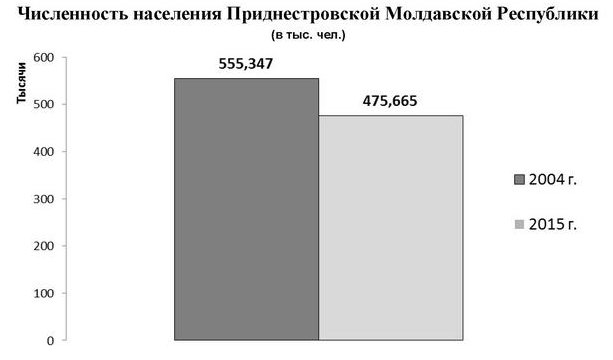 Краткие итоги переписи населения ПМР 2015 года. По сравнению с данными переписи 2004 года население Приднестровья сократилось на 79682 человек или на 14,3%. |