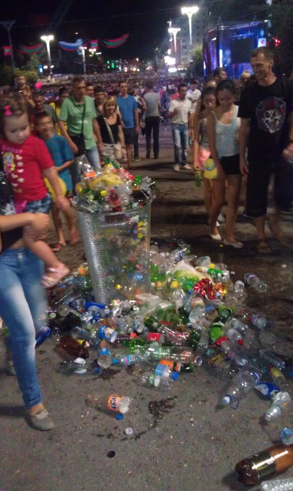 Праздничный салют многие люди смотрели через телефоны, плохая тенденция... Толпа была очень большая, от 6 школы до эксимбанка. Ну и с мусорками не угадали, думали, что человек 100-200 придет на концерт, а было немного больше. Ну тут я не удивлен даже... |