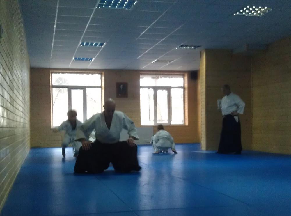 Сегодня в TORI ребенок сдавал экзамен на свой первый "кю". В айкидо это толи 6-ой то ли 10-ый кю. После первого "кю" идет черный пояс. Плюсы - большой хороший зал. Минусы - холодно, а в раздевалке просто мороз. |