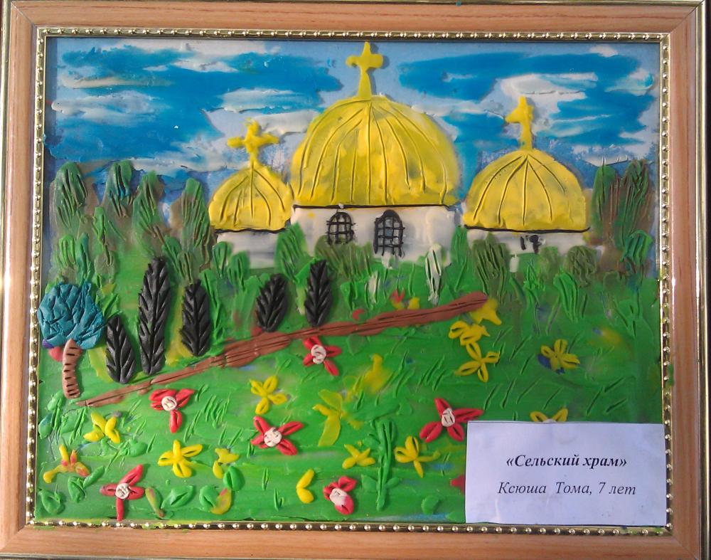 Картины "Восход" и "Сельский храм", Ксюша Тома, 7 лет. |