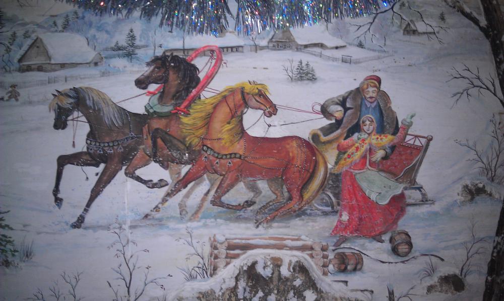 Картина "Олень и веселый снеговик" - украшение входа в актовый зал. Ну и просто понравилась картина неизвестного мне автора на стене Дома Народных Традиций и Ремёсел. |