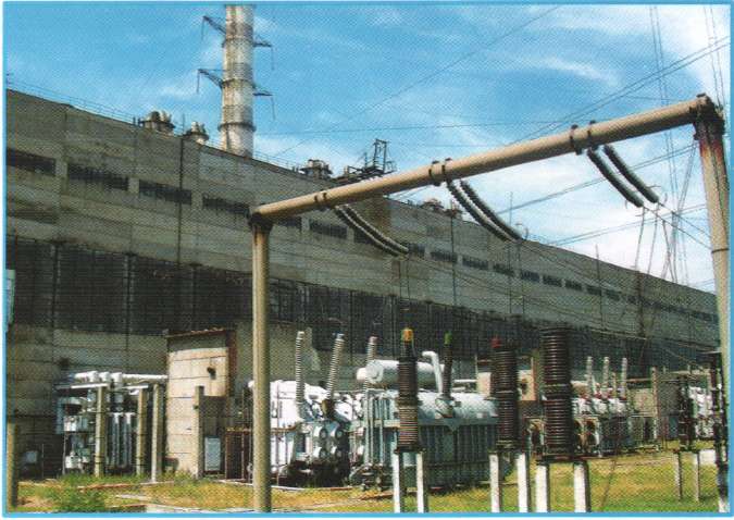 Выдача электрической мощности на электростанции осуществляется на напряжениях 110, 330 и 400 кВ с открытых распределительных устройств (ОРУ), расположенных с западной стороны главного корпуса. ОРУ 110 и 330 кВ выполнено по схеме с двумя рабочими системами шин и обходной системой шин. ОРУ 400 кВ выполнено по схеме четырехугольника. Связь между ОРУ 110 и 330 кВ осуществляется с помощью двух трехфазных автотрансформаторов по 125 МВА; между ОРУ 330 кВ и ОРУ 400 кВ — двумя группами однофазных автотрансформаторов по 210 МВА. Два турбогенератора мощностью 200 МВт через повышающие трансформаторы мощностью 250 МВА подключены к шинам ОРУ 110 кВ, восемь турбогенераторов — 200 МВт через повышающие трансформаторы той же мощности подключены к шинам ОРУ 330 кВ. Два турбогенератора по 210 МВт подключены к шинам ОРУ 400 кВ через повышающие трансформаторы по 250 МВА. Два генератора газотурбинных установок (ПГУ) подключены через повышающие трансформаторы мощностью 80 МВА к обмоткам 35 кВ автотрансформаторов связи 400/330/35 кВ. Собственные нужды электростанции обеспечиваются на напряжениях 6,0 и 0,4 кВ. Блочные трансформаторы собственных нужд включены в отпайки генераторного напряжения. Резервные трансформаторы собственных нужд питаются: один с шин 110 кВ, другой с низкой стороны (35 кВ) автотрансформаторов 1 -2 AT. Пристанционный узел l-IV очереди |