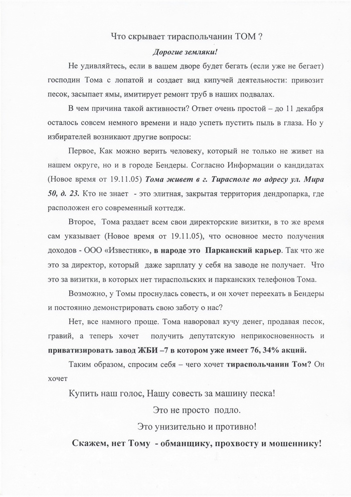 а ещё у него в собственности в бендерах жби-7 приобретенное на ворованые с карьера деньги о собственности за рубежом говорить не будем пока когда будут факты тогда изложим