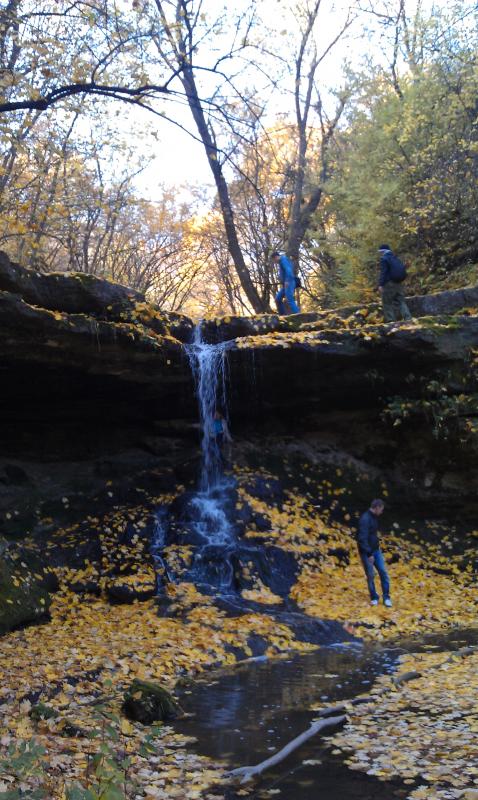 Пройдя по узкой тропе и чуть по лесу мы попадаем к водопаду, а над ним чуть далее расположен еще один водопад: |