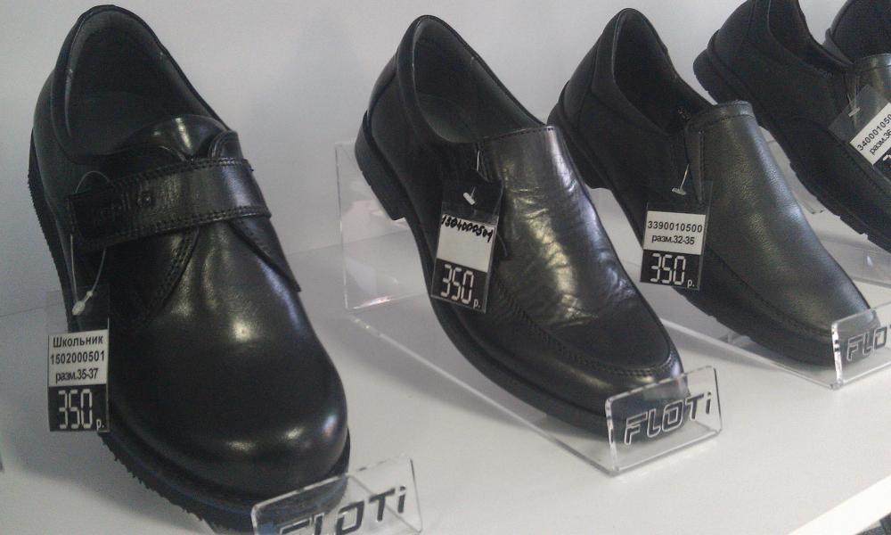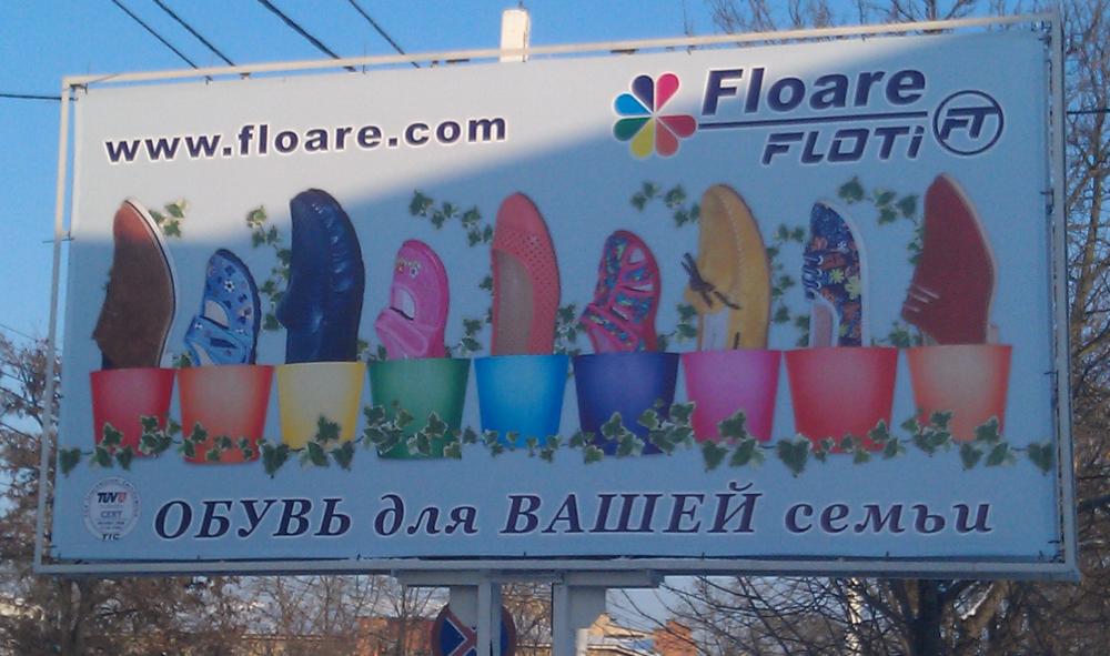 В итоге я пошел в ближайший магазин "FLOARE" в Тирасполе, рядом с российским консульством. Баннер "Флоаре" рядом с дорогой у входа в магазин. По нему будет его легко найти. Вид на всю обувь в тираспольском магазине "Флоаре". Продавщица очень дружелюбная, рассказала, что есть совместная фирма "FloTi" - которая скупает обувь у "Флоаре" и "Тигины" и продает их в своих магазинах "ФлоТи". Эта фирма - совместное детище фирм "Флоаре" и "Тигина". Так же на фабрике "Флоаре" есть цеха "FloTi". |