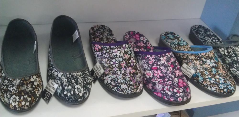 Домашние тапочки - мужские и женские, судя по расцветке. |