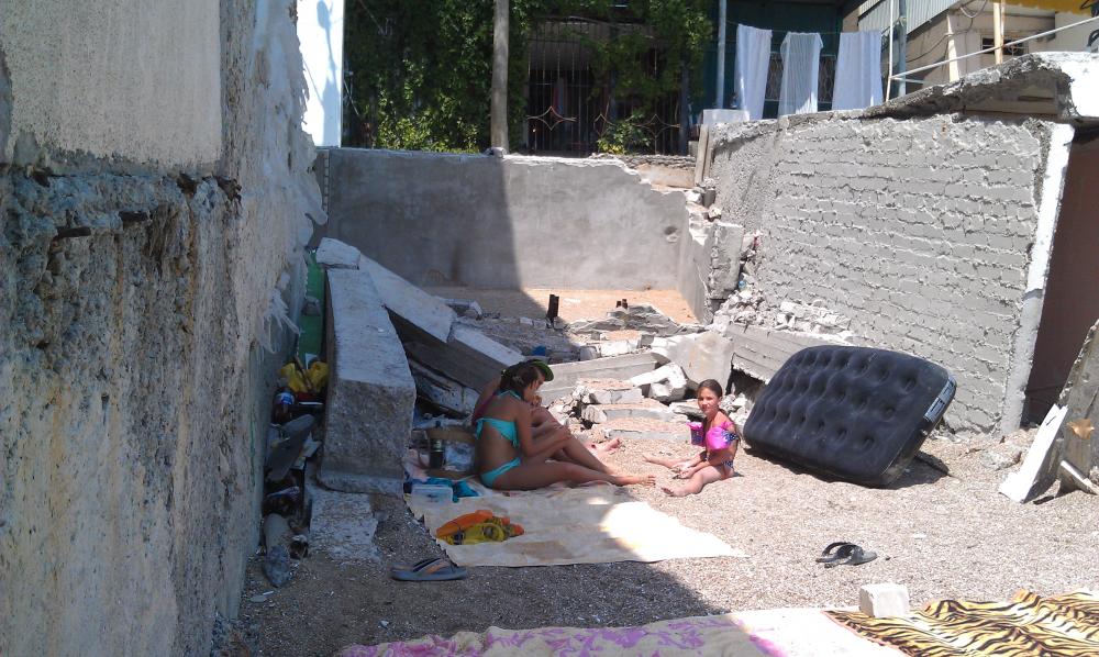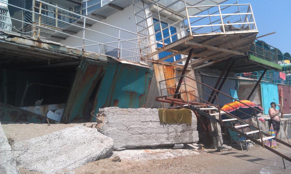 И как следствие, многие многоэтажные домики (их называют "курень", на маленькой площади строят 3-4 этажные домики под сдачу жилья для туристов) покосились, а некоторые просто разрушены.