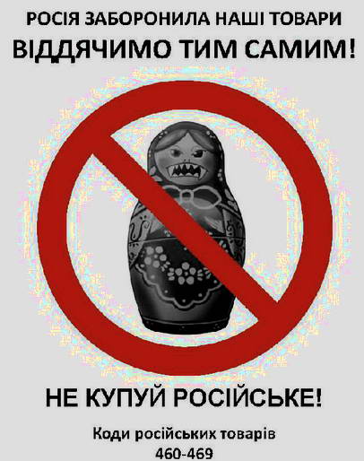 Киев, Сентябрь 11 (Новый Регион, Константин Зельфанов) – На улицах Киева, Днепропетровска, Одессы, Львова, Житомира и Тернополя появились зубастые матрешки. Именно такой символ размещен на плакатах и наклейках, которые призывают украинцев не покупать российские товары в ответ на ряд недружественных шагов северного соседа.