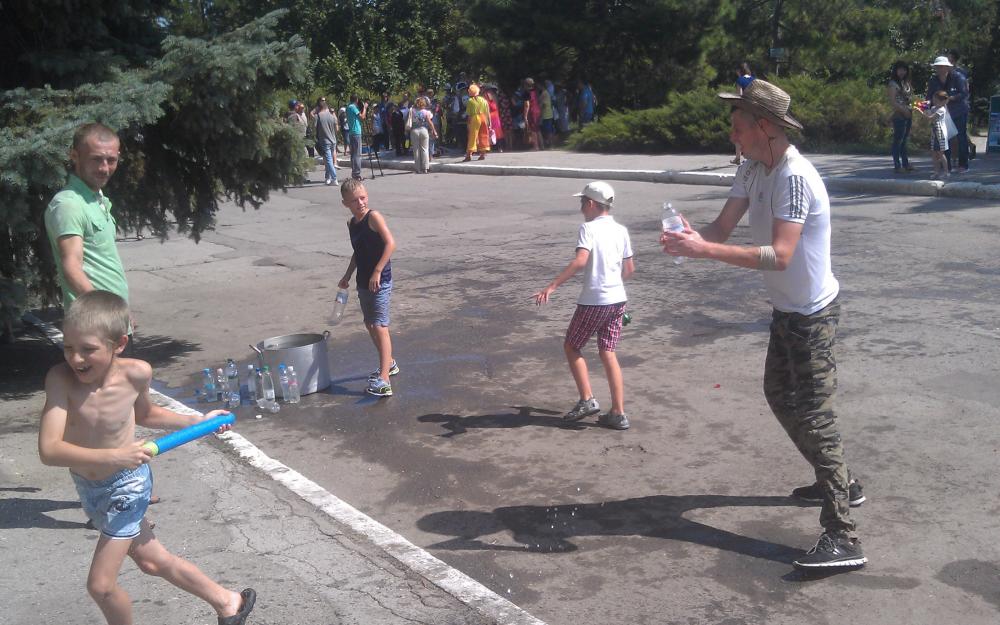 Да, периодически происходили небольшие водные битвы, которые как-то спасали народ, особенно детей - от жары в 38 градусов! |
