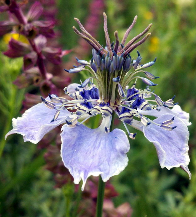 Кстати для правильного определения растения нужно видеть его листья и корни и плоды, но очень похож на адонис по виду, их много всяких... Нашла таки)) да и то вспомнила по названию, есть такое же культурное) <<<ернушка полевая Nigella arvensis L. (Лютиковые, Ranunculacea) Посмотришь на это растение и скажешь: «обыкновенный полевой цветок». А он совсем и не обыкновенный. С ним иногда связывают загадочную историю гибели немецкого императора Фридриха Первого — Барбароссы. На берегу реки, в которой он якобы утонул, была найдена до той поры не виданная трава, чем-то напоминавшая фею. Это была чернушка. Незаурядная внешность «феи» проявилась и в ряде разноязычных названий: «дева в лесу», «простоволосая невеста» (Braut in Haaren, Jungfer im Grtinen, Nigelles des Dames, Cheveu de Venus). Есть даже и такое название — «дьявол в кустах» (английское Devil in a Bush). В названии растения присутствует черный цвет (чернушка). Происходит оно от названия рода на латинском языке — Nigella, которое ведет начало от древнелатинского nigellus, черноватый. Чернушки — не только красивое травянистое растение и сорняк. Некоторые виды этого растения используют как пряности, например, так называемый черный тмин (по-немецки Schwarzktimmel). В качестве корений чернушки употребляют преимущественно на Ближнем Востоке. Чернушка — символ понятия «конец любви». Недаром на языке цветов букет чернушек — печальный знак. Иногда встречается название «цветок святой Екатерины»: кругообразные прилистники очень схожи со средневековым орудием пытки, на котором мучили заключенных, в частности, некую святую Екатерину. >>> Конец любви - как это символично))