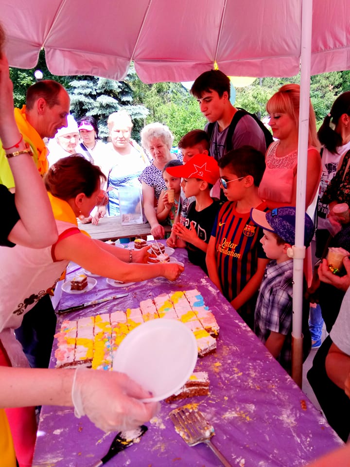 Ко дню защиты детей, была проведена очередная благотворительная акция для деток. Всем желающим раздавали вкусности и напитки. Так же организаторы подготовили огромный торт на 108 кг, игрушки и сладкую вату. |