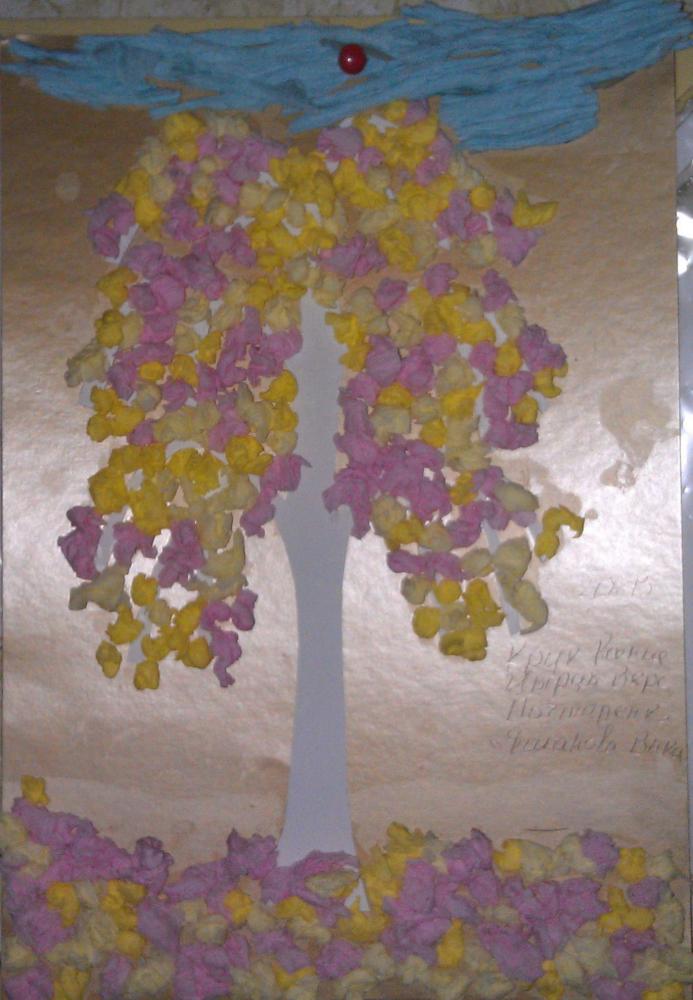 Свечки из пластилина. Детки в 6 лет в садике на занятиях такое делают. Аппликации из цветной бумаги - осеннее дерево. |