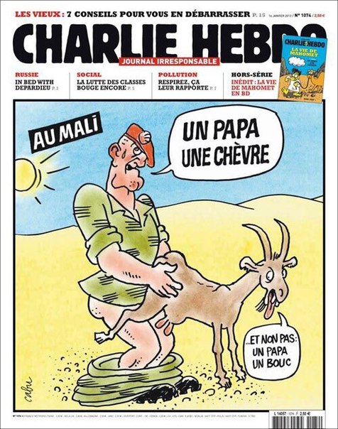 Возмутило то что эту атаку окрестили террористическим актом. Это не террористический акт, а акт беспредела верующих. Возмутило мнение российских "политологов" говорящих что французы сами виноваты - пророк это святое, и нефиг его трогать. Значит на президента страны можно комиксы рисовать, а на какого то мужика людям голову дурящего нет, на президента можно говорить ПТН ПНХ, а на дядьку в чалме - ни ни. На обычного человека можно и укроп сказать, и ватник, и лапотник, но если задеть хоть краем вора на доверии, то атака на редакцию вполне обоснованна... А не пошли бы ***** такие политологи! С определением терроризма вообще мраки. 5 миллионов (миллионов!!!) человек грят "Пашла нафиг такая страна, мы от неё отсоединяемся!" - они террористы! Ни заложников, ни взорванных людных мест, ни требований при выполнении которых террористические акты прекратятся, и всё равно - террористы! Вот другие чуваки на БМП въезжающие в город (мирный) и стреляющие по прохожим это не террористы, а первые террористы. Чуваки приехавшие в город и открывшие огонь на поражение по безоружным не кидающимся в драку людям тоже не террористы, а чуваки приехавшие в другой, уже французский город и открывшие огонь по безоружным, не кидающимся на них в драку людям - уже террористы... Это ублюдки! Но не террористы! Это атака редакции, но не террористический акт.