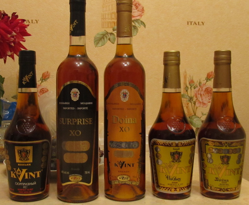 Вот фото квинтовского коньяка, как он выглядит, если его брать в ПМР в фирменных магазинах. Интеерсно сравнить с тем, что в РФ продается. Стоит он у нас примерно 5-8 у.е.