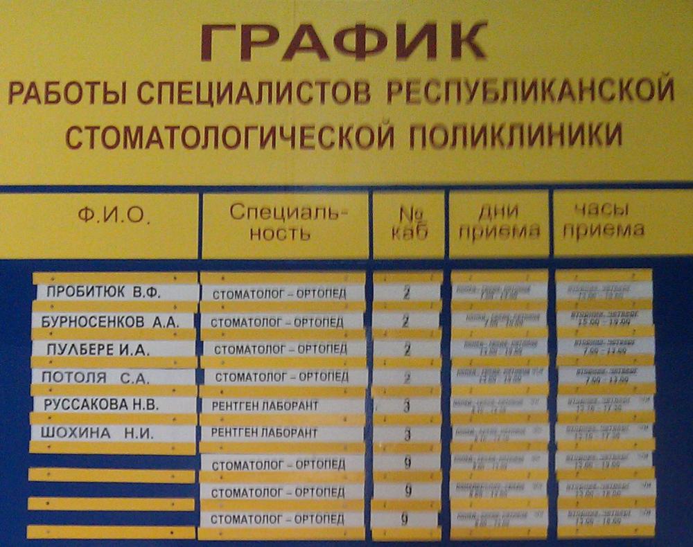 Сфоткал расписание работы врачей в стоматологии в Тирасполе. |