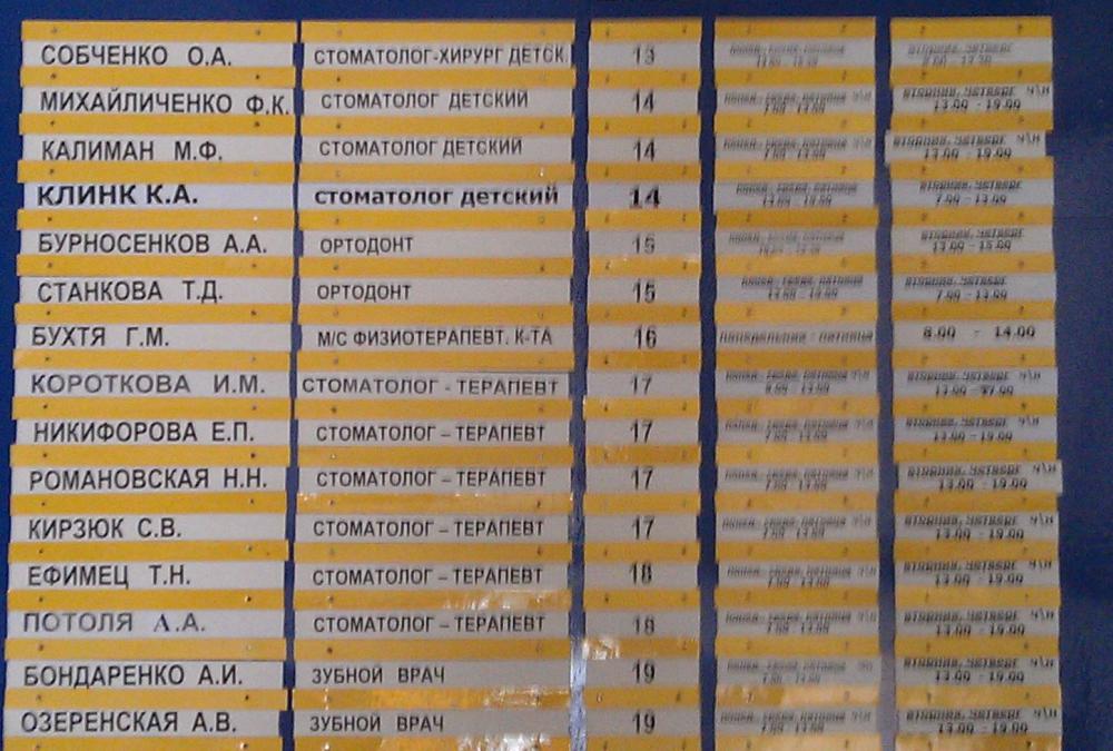 Сфоткал расписание работы врачей в стоматологии в Тирасполе. |