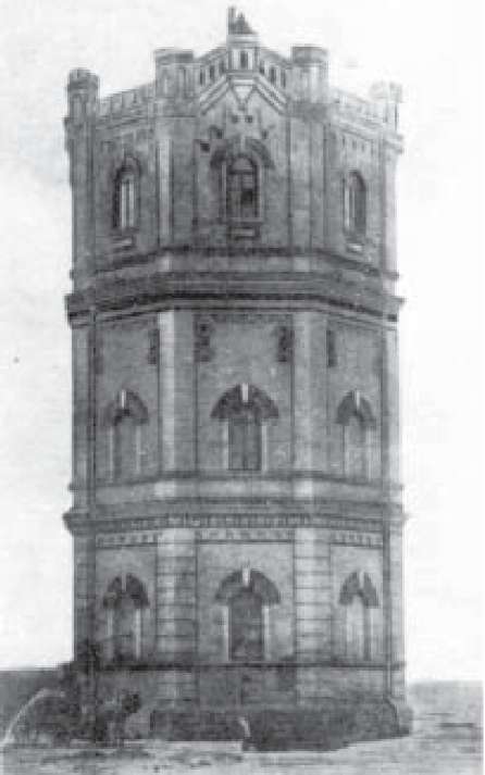 Та же газета четыре месяца спустя пишет о Тирасполе: «... на улицах страшная пыль, во дворах выливаются помои, здесь же лежат кучи навоза, а нередко и дохлая птица, сами господа-тираспольцы пьют, беря ведрами прямо из Днестра, грязную нефильтрованную воду, и все это никого не возмущает, никто даже не думает об улучшении санитарного состояния города. Тирасполь. Водонапорная башня. |