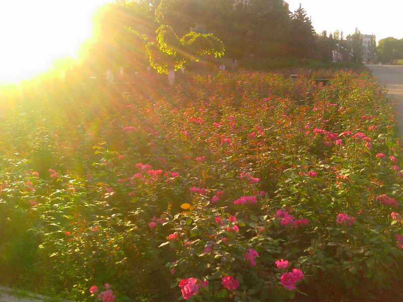 Спасибо за фотографию роз в скверике возле Исполкома. Сияние на фото можно рассматривать и весьма символично – оно исходит со стороны Преображенского Собора все-таки!