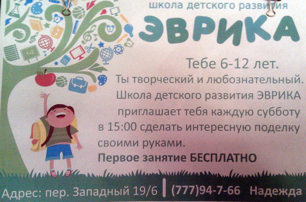 В школе сфоткал объявление. Тирасполь. Школа детского развития Эврика - учат детей делать поделки.