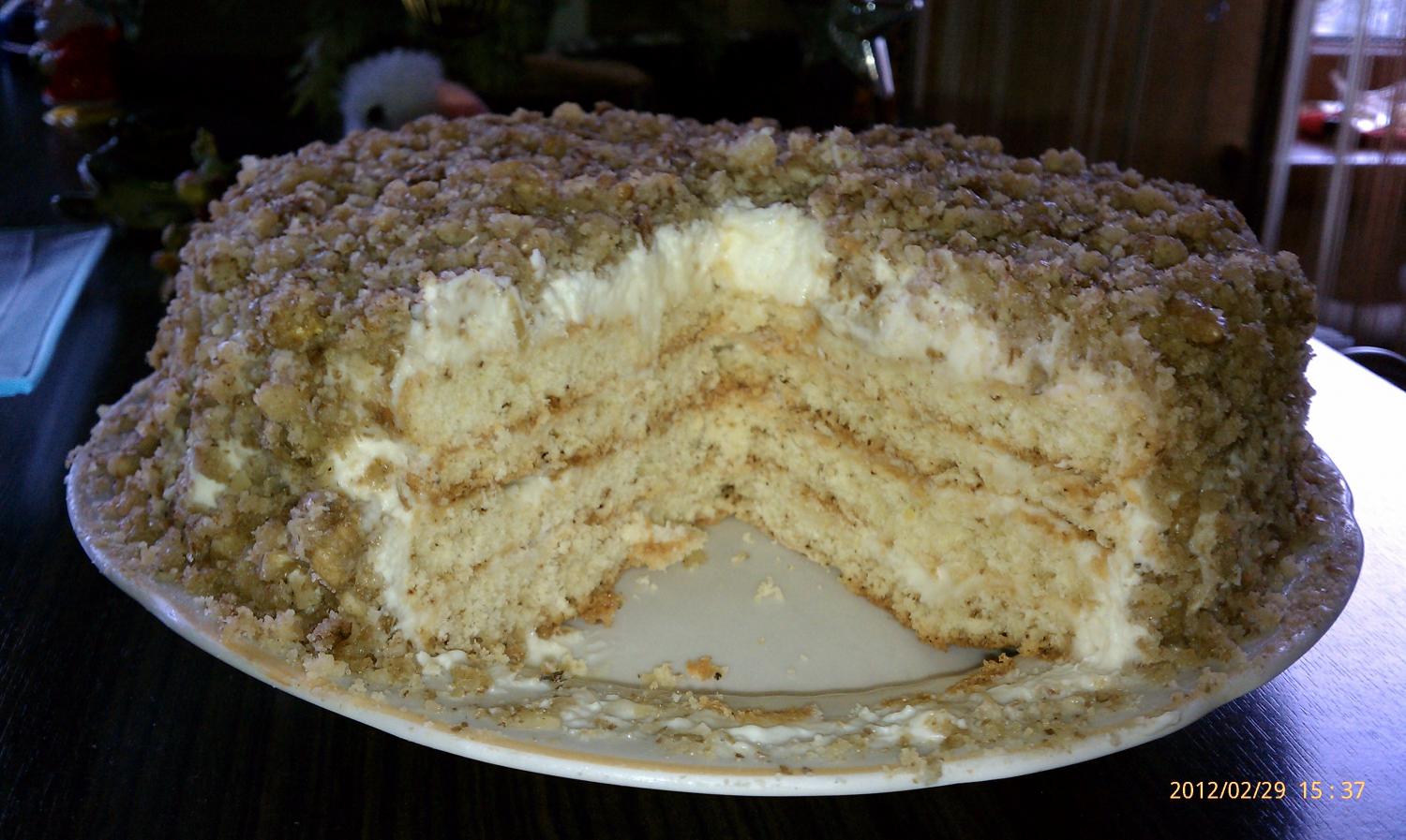 вот этот совсем другой торт из песочного типа теста.тоже выпекается в мульте..но каждый корж отдельно. готовится немного дольше предыдущих, но вперемешку с делами нормально...........