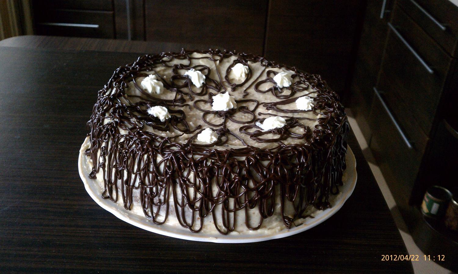 вот еще один: коржи - медовый бисквит, крем-шарлот ореховый!!!пропитка сметанная чуть с сахаром для кислинки. над украшениями торта еще работаю.делала торт на заказ.заказали еще один на 6 мая.