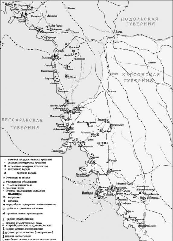 ПРИДНЕСТРОВЬЕ В XIX — НАЧАЛЕ XX ВЕКОВ После блистательных побед русского оружия в декабре 1791 года с Турцией был подписан Ясский мирный договор, по которому приднестровские земли от реки Ягорлык и до черноморского побережья были возвращены в состав русского государства. Необходимо отметить, что еще около десяти лет Приднестровье было пограничной территорией со всеми вытекающими последствиями. После заключения в 1812 году Бухарестского мира и отказа Турции от притязаний на Бессарабию граница между Османской империей и Россией прошла по Пруту, а Приднестровье стало внутренней территорией России. К этому времени уже были основаны города Григориополь ( 1792) и Тирасполь (1792) - один как торговый, а другой как военный центры Приднестровья. Митрополит Гавриил (Банулеску-Бодони). Приднестровские земли ниже устья реки Ягорлык активно заселялись и вводились в хозяйственный оборот. российское правительство, учитывая положение и же лая придать освоению земель более быстрые темпы, предприняло меры по притоку населения в край. Были приглашены переселенцы из Германии, которым были отданы земли по течению реки Черная недалеко от армянского Григориополя. В 1804 —1809 гг., было основано несколько крупных колоний Нейдорф, Бергдорф, Гликсталь, Генрихсдорф, а также более 20 хуторов. К концу ХЕК - началу XX вв. этот район компактного проживания немцев играл серьезную роль в хозяйственной жизни Приднестровья. Болгары получили земли напротив Бендер и основали колонию Парканы. Переселенцы в Приднестровье получали статус государственных крестьян, льготы и кредиты для обзаведения хозяйством. Особо поощрялось земледелие и скотоводство. Украинское, русское и молдавское население, а также колонисты были задействованы в основном в сельском хозяйстве и переработке продуктов сельского хозяйства. Еврейское население занималось торговлей. В 1805 г. в Приднестровье началось почтовое сообщение. Почтовые станции связали регион с Кишиневом, Одессой, Киевом, Москвой и другими городами страны. В середине XIX в Тираспольском уезде даже выпускалась земская почтовая марка. К концу XIX в. Приднестровье производило зерно, овощи, фрукты, сухофрукты, сало, вино, шерсть, продукты животноводства. Завозило промышленные товары, крупный рогатый скот, коней, товары обихода, металл, металлическую и глиняную посуду. Получили развитие различные ремесла, широко использовался в строительстве местный известняк. В некоторых местах велась его промышленная разработка. Широкое развитие получили ярмарки. Всего в Приднестровье проводилось около сорока ярмарок в год, на которых были представлены как продукция, производимая в Приднестровье, так и товары из других областей России и из-за границы. Женская гимназия. Тирасполь, начало XX века. С развитием сахарной промышленности на юге Украины Приднестровье стало производителем сахарной свеклы в промышленных масштабах. Для вывоза сырья сахарозаводчик Терещенко построил узкоколейную железную дорогу от Каменки до станции Рудница Юго-Западной железной дороги, откуда оно доставлялось на заводы для переработки. К этому периоду через Приднестровье были проложены две железнодорожные колеи. Тирасполь и Рыбница стали крупными железнодорожными станциями, а Приднестровье получило современный вид транспорта для связи с внутренними областями России.