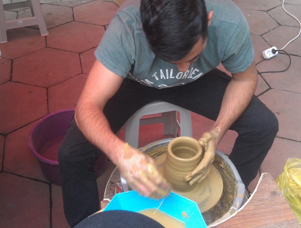 Гончарное ремесло, парень делает кувшин. Тут же и продаются кувшины. Студия лепки и горчаного мастерства "Глинка". Еще один производитель глиняной посуды в ПМР. |