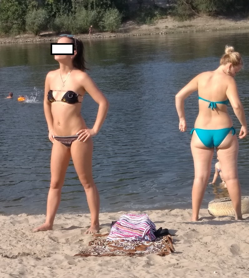 Две девушки загорают на пляже - интересно, какая фигура больше нравиться форумчанам? Вкусы же разные. Ой, извините, вот правильный ракурс для сравнения. |