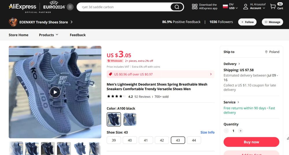 Такие китайские кроссовки можно купит на aliexpress за 8-12$ с доставкой в Польшу