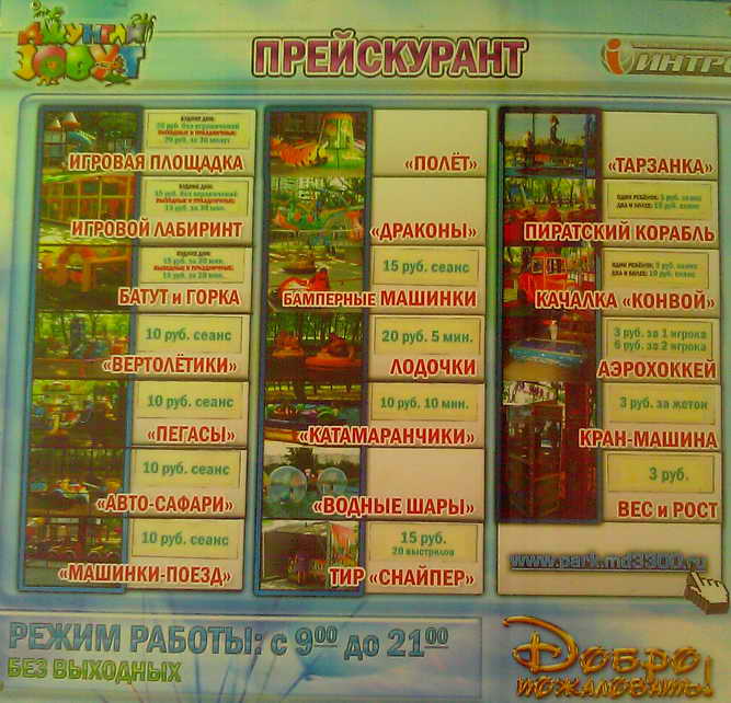 Вот цены на детские аттракционы в Парке Победы в Тирасполе: |