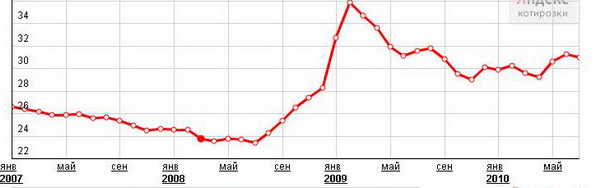 Интересно, какая общая динамика изменения рубля РФ у американскому доллару? Посмотрел, что до июля 2008 года российский рубль крепчал, курс был 23р. А в феврале 2009 - поднялся до 36р! Что так сильно экономика изменилась? Или все от цены на нефть и еще пары факторов зависит? И уже почти дод курс скачет в районе 30р. Как думаете - что будет дальше с рублем РФ?