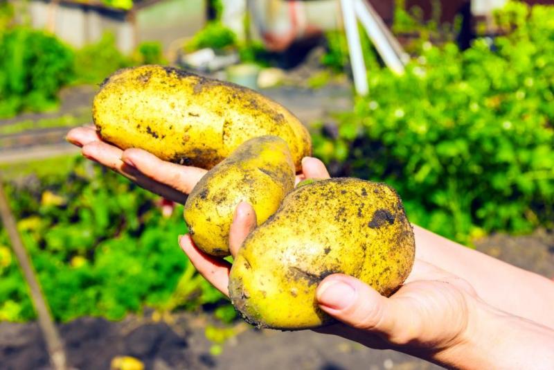 С одного куста выкопали около трех клубней, но зато каких! Огромные шопипец.