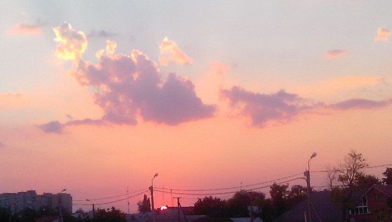 Вот очень понравилось на днях красное небо над Тирасполем - необычный закат. Прохожий сказал - к войне. Я увидел в облаках дракона, а сын - свинку. А что видете Вы? |