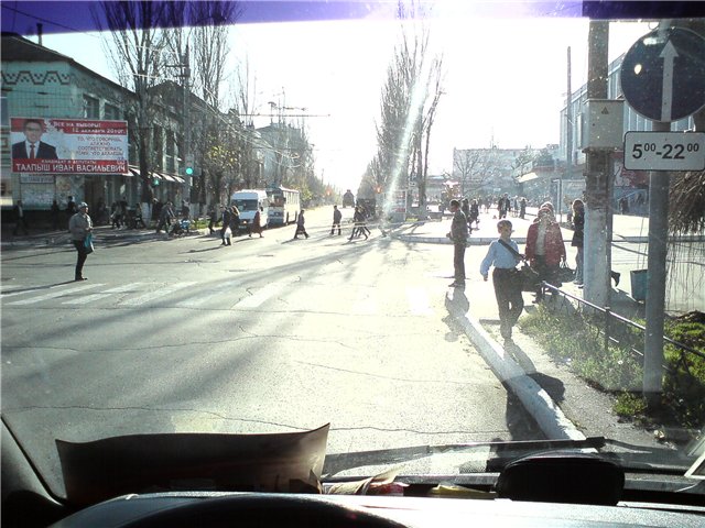 а это фотография центра Бендер, обратите внимание как переходят дорогу наши уважаемые и всезнающие ПДД пешеходы, на красный свет.