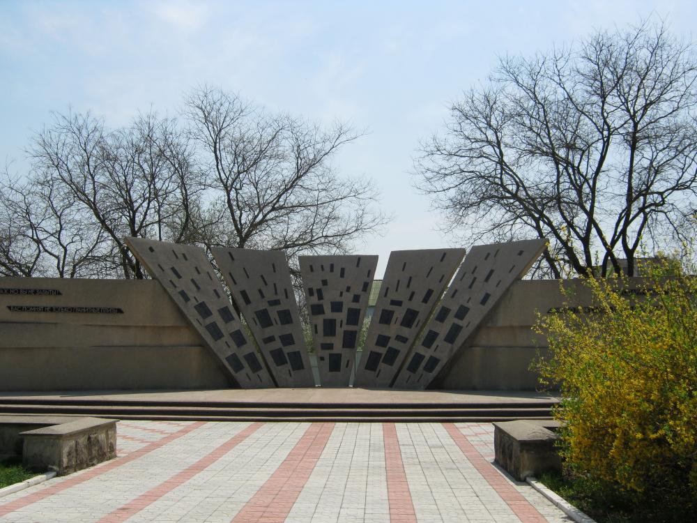 Якорь на набережной реки Днестр (когда-то в Бендерах даже находилось министерство Речного флота МССР): Памятник бендерчанам - жертвам холокоста: Одна из тенистых аллей на набережной реки Днестр: Гномики и летняя эстрада («ракушка») в парке «Октябрьский» на набережной: Памятник борцам за власть советов: |