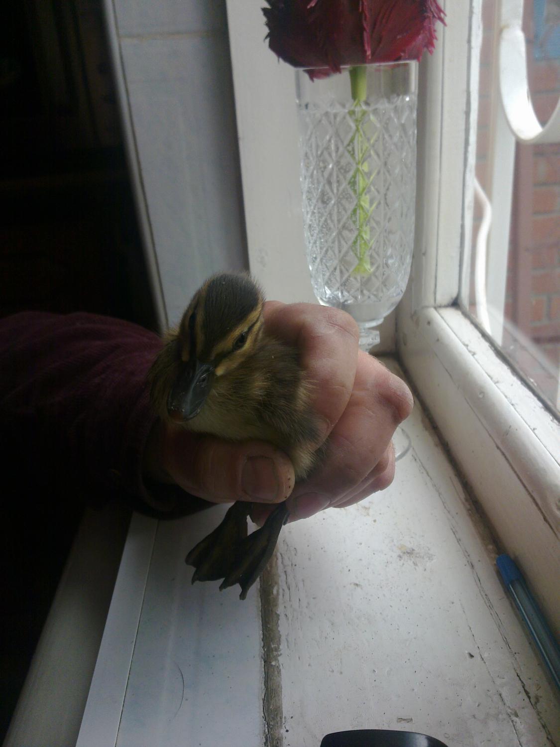 а это дикий утёнок. завела их мама в наш огород. еле одного поймали....