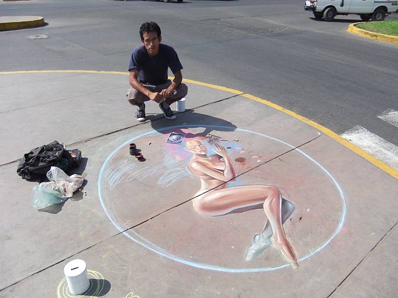 Бетонный тротуар, цветной мел, XXI век